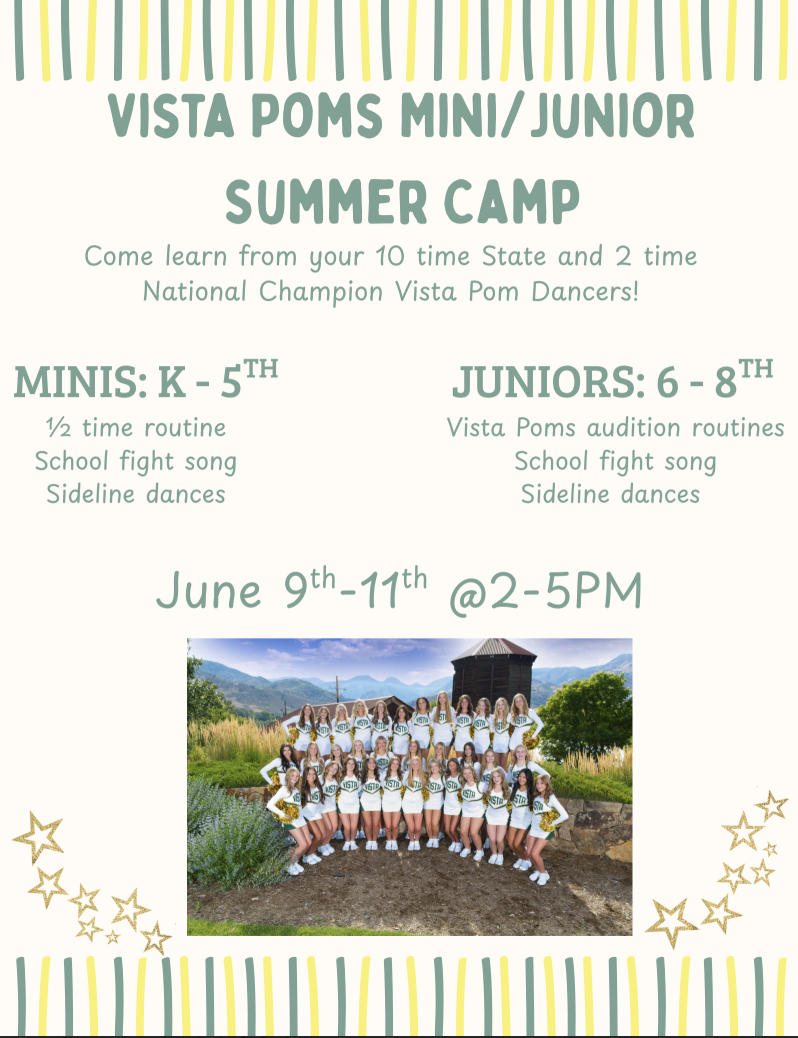 Come learn form your 10x State and 2x National Champion Vista Pom Dancers!
